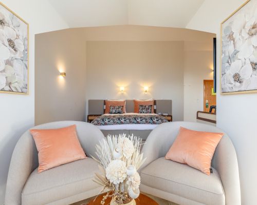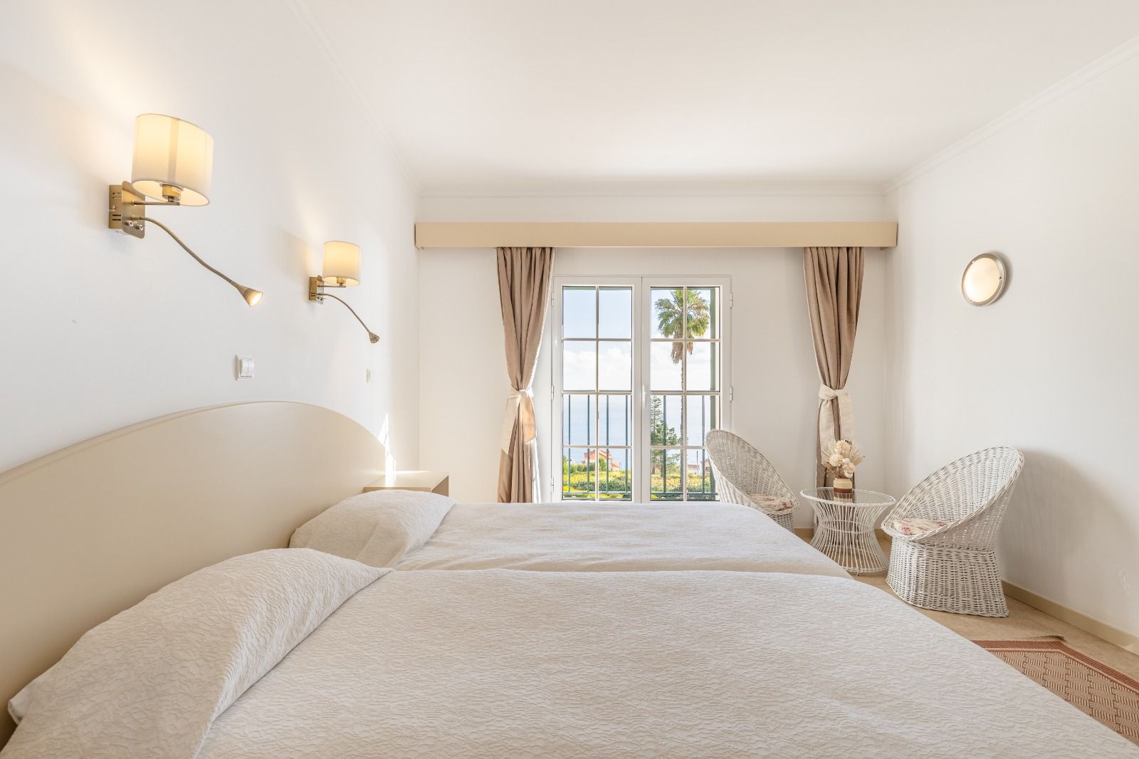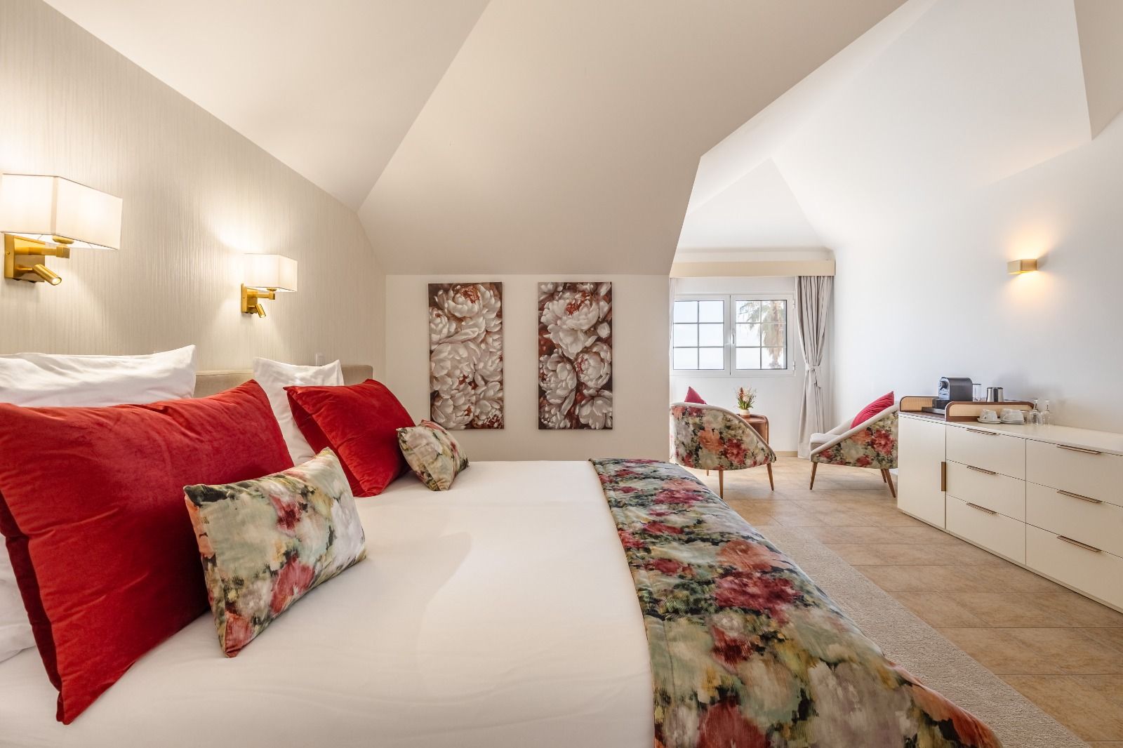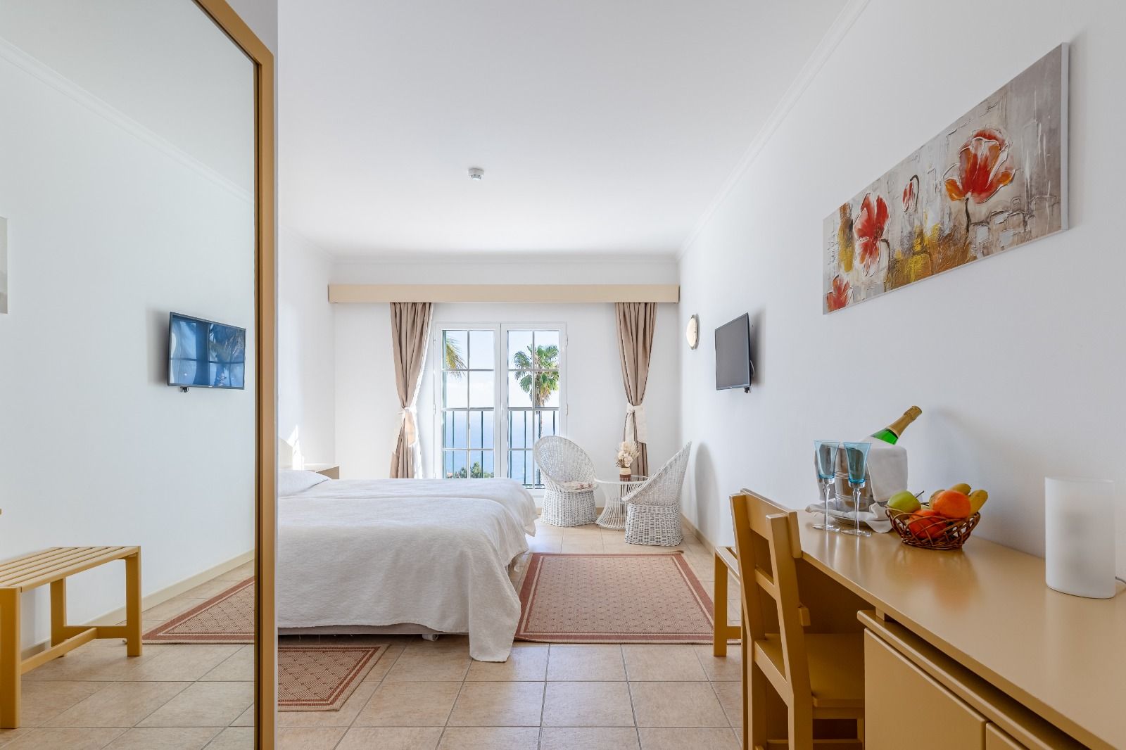 Die Junior Suite mit Meerblick im Hotel Quinta Alegre bietet ein großzügiges und stilvolles Ambiente. Eine besondere Atmosphäre entsteht durch einen beeindruckenden Blick auf das glitzernde Meer und zum Träumen einlädt. Zur Ausstattung gehören ein King-Size Bett (2mx2m), ein modernes Bad, eine gemütliche Sitzecke, ein Flachbildfernseher und kostenloses WLAN. Minibar und ein Kaffee / Teeset steht auch zu Ihrer Verfügung. Perfekt für Gäste, die eine luxuriöse und entspannende Unterkunft mit atemberaubendem Meerblick suchen, um ihren Aufenthalt in vollen Zügen zu genießen.